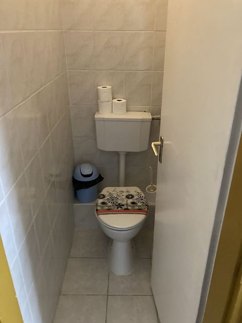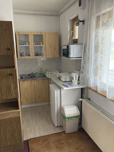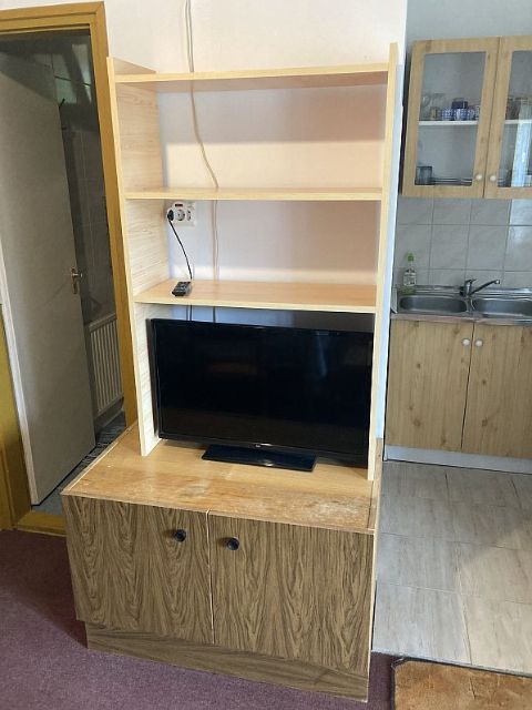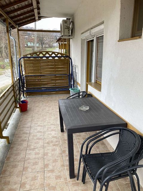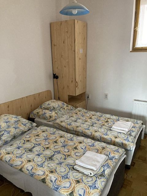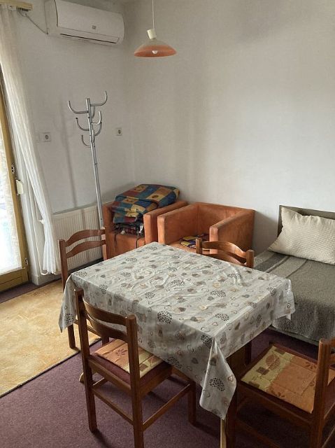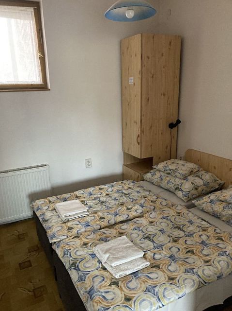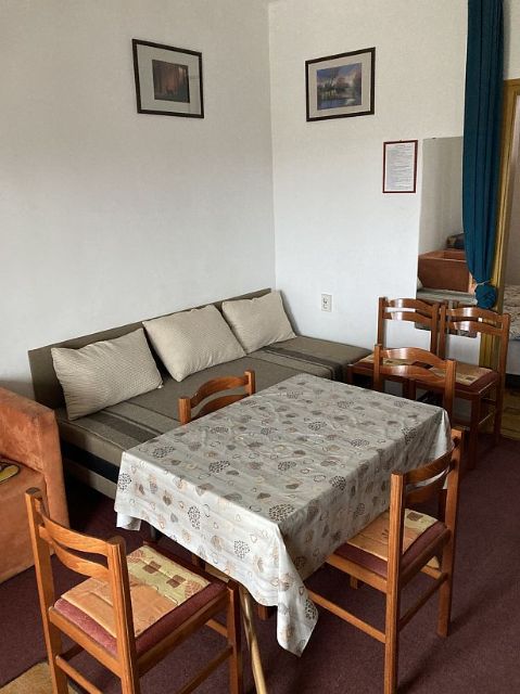 A földszinten található. 2 hálószoba (2 x 2 ágy), nappali (2 személyes heverővel, mely függönnyel leválasztható), fürdőszoba zuhanyzóval és WC-vel, külön WC, konyha, (teljes felszereléssel, mikrohullámú sütővel) hűtő, étkező sarok található benne. TV, fedett terasz, parkoló tartozik az apartmanhoz. Klíma térítés ellenében használható.