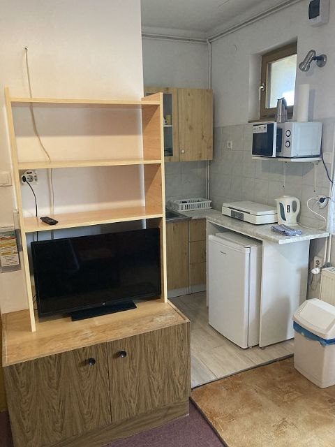 Es befindet sich im Erdgeschoss. Es verfügt über 2 Schlafzimmer (2 x 2 Betten), Wohnzimmer (mit einer 2-Personen-Couch, die durch einen Vorhang abgetrennt werden kann), Badezimmer mit Dusche und WC, extra WC, Küche (voll ausgestattet, mit Mikrowelle), Kühlschrank und Essbereich. Zur Wohnung gehört ein TV, eine überdachte Terrasse und ein PKW-Stellplatz. Eine Klimaanlage steht gegen Gebühr zur Verfügung.